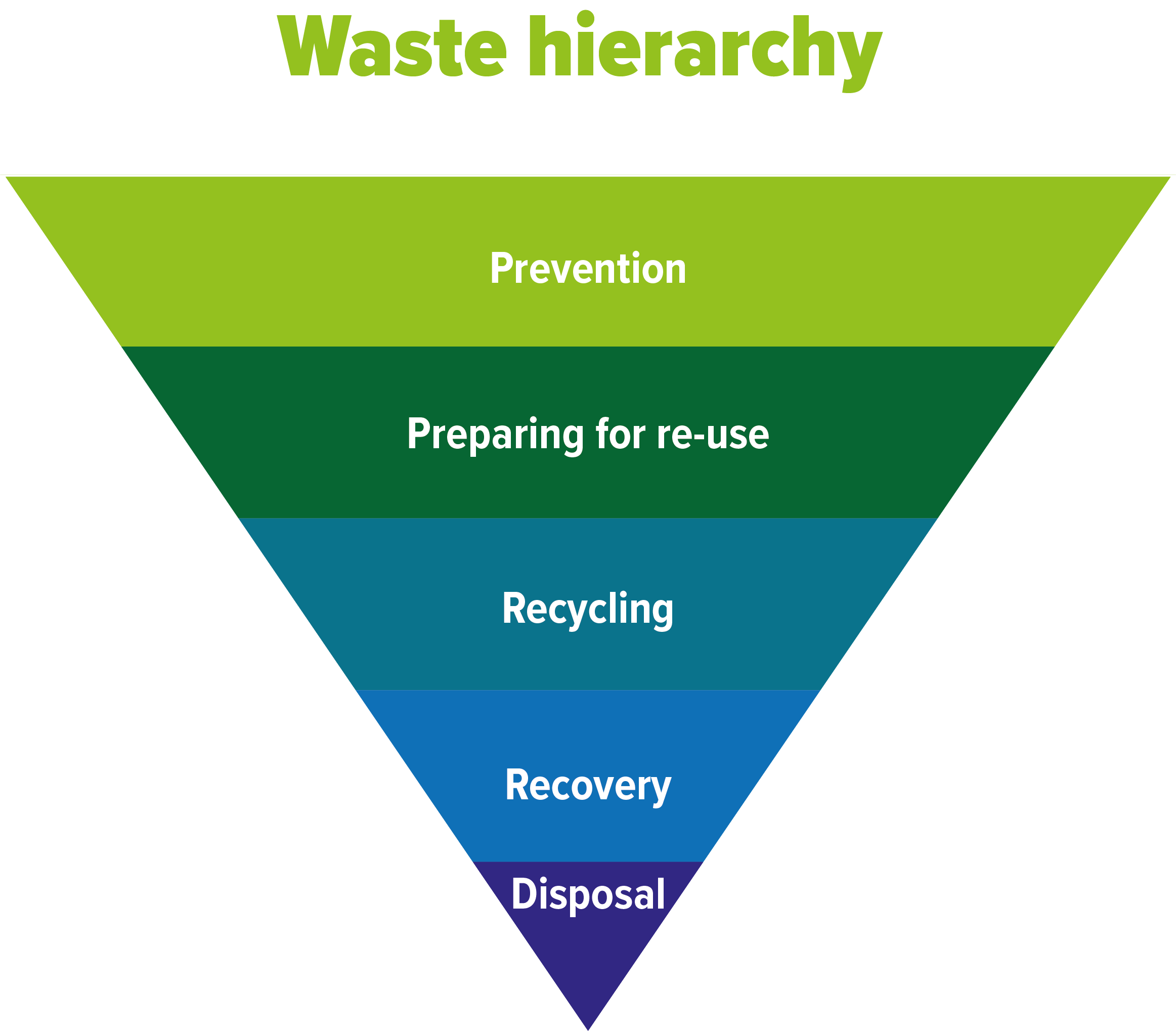 In 2008 heeft de Europese Commissie de Kaderrichtlijn afvalstoffen gepubliceerd waarin het de basisprincipes voor afvalbeheer vastlegt. De basis is de vijf stappen omvattende afvalhiërarchie die een voorkeursvolgorde vaststelt voor het beheer en de verwijdering van afvalstoffen (Europese Commissie, 2008).